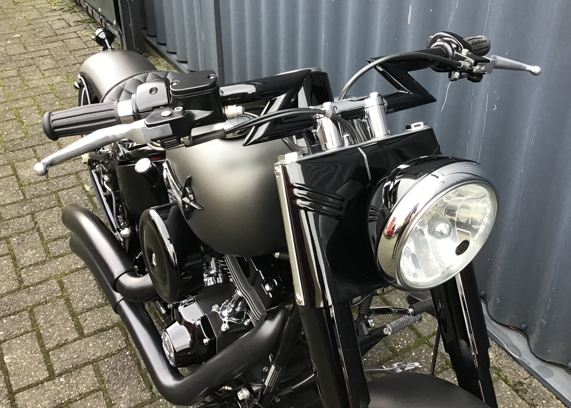 Big spokes 16 inch, 180 achterband, Custom Saddle, Big Radius XXL uitlaat, Z-bar, Custom made fenders
