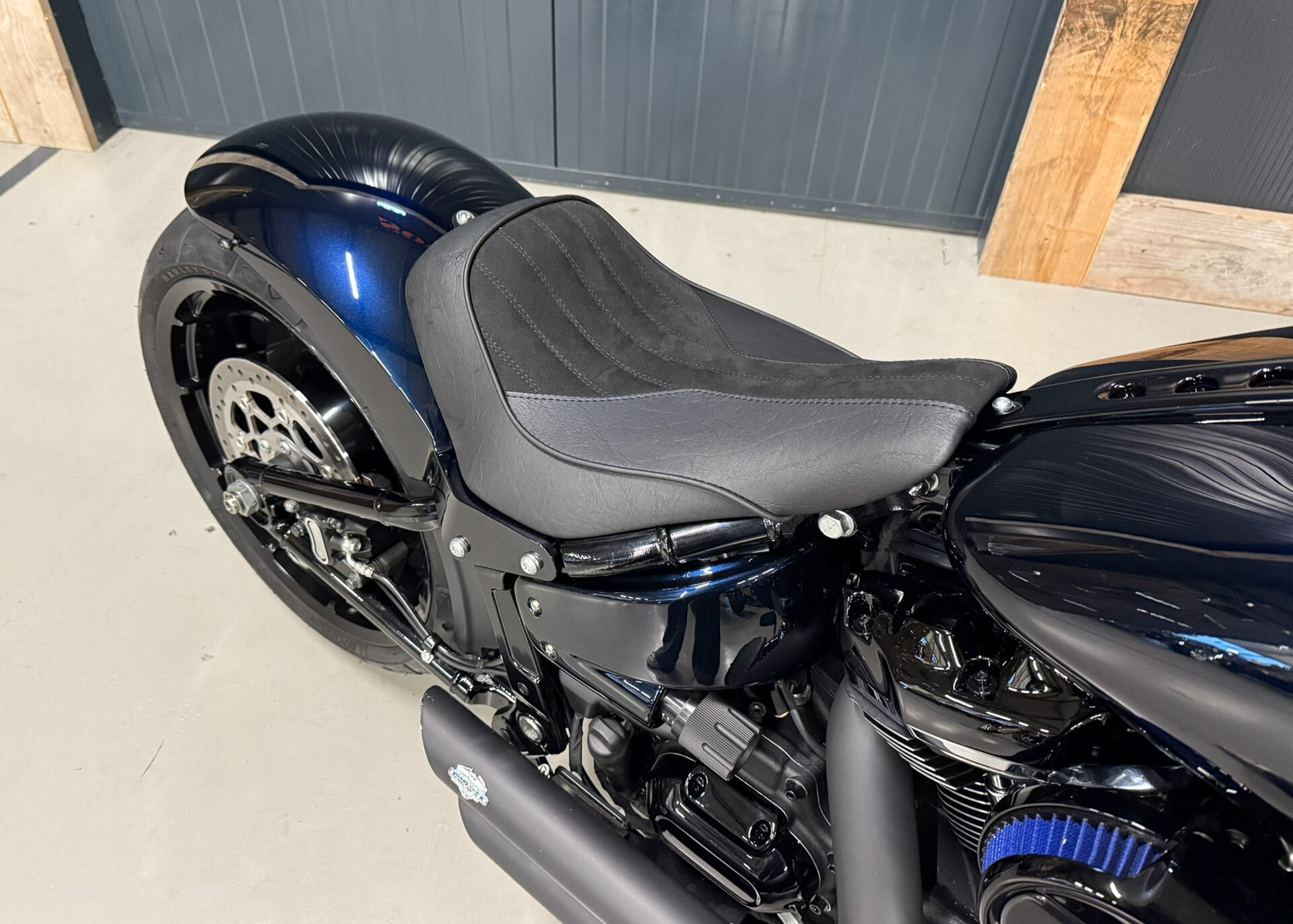 Deze Harley-Davidson Fat Boy Custom 114CU uit 2021 is voorzien van een complete South-East custom verbouwing. Deze custom is o.a. voorzien van midnight blue paint, pop-up tankdoppen, custom spiegels, vance & hines shortshots, ABS, custom seat, custom fenders, led daymaker headlamp, custom 2'' handlebar, kellermans 3-1 ledlights en meer..