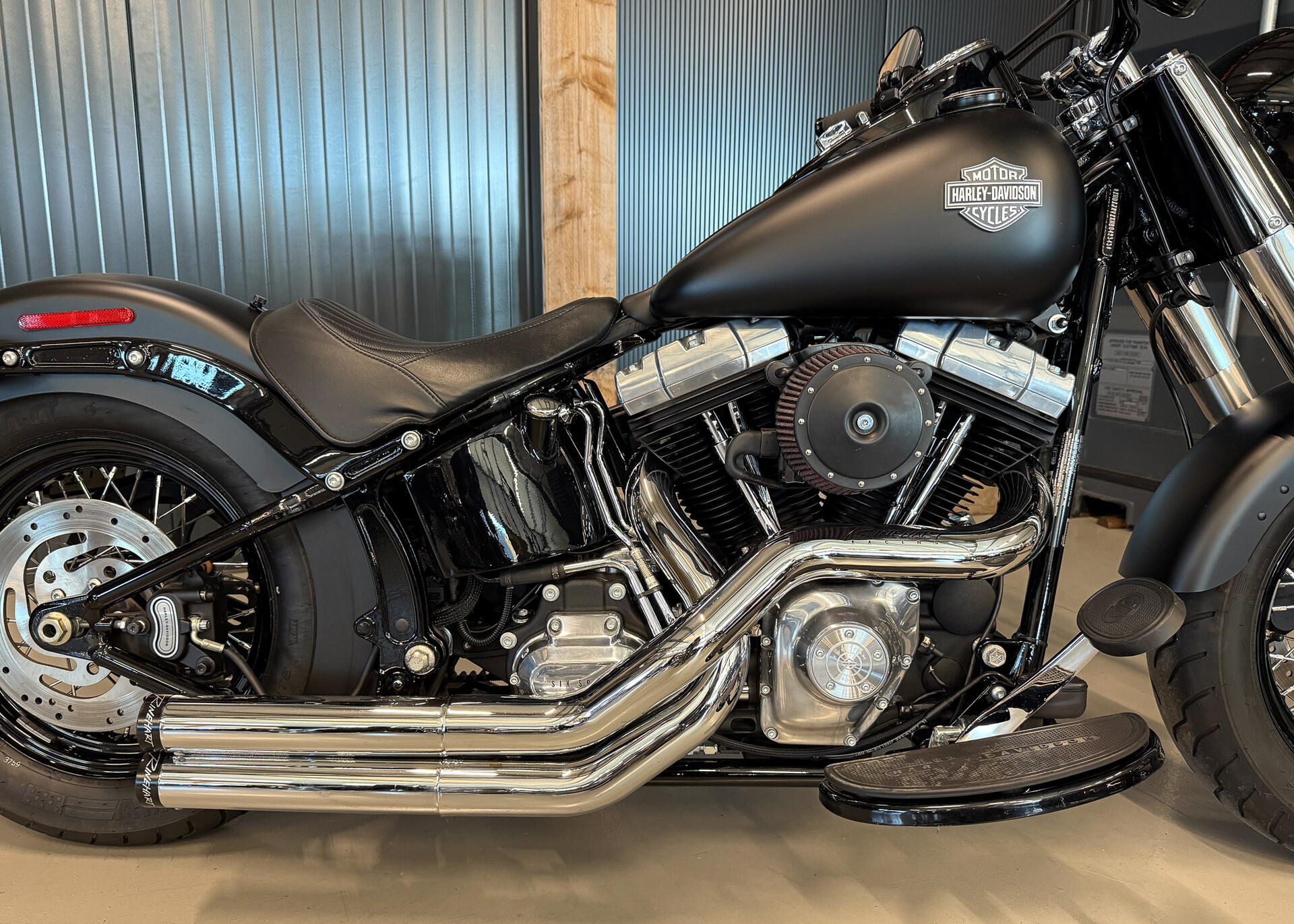 Deze Harley-Davidson FLS Softail SLim uit 2017 is voorzien o.a. voorzien van een Rinehart uitlaat, denim black paint, led lights en meer..