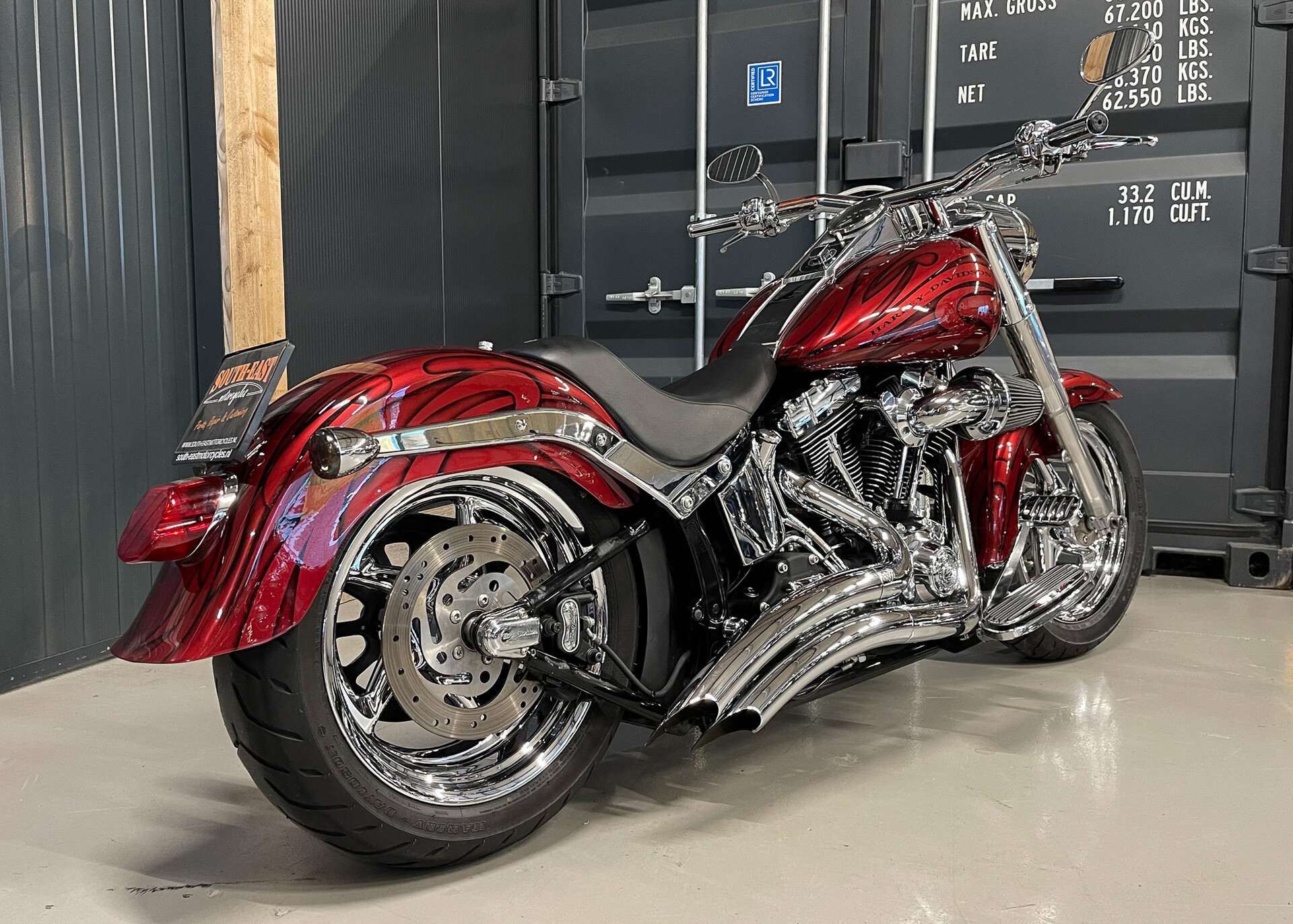 Deze Harley-Davidson FLSTF Fatboy uit 2009 is voorzien o.a. voorzien van custom wielen, custom paint, Big Radius uitlaat, solo seat, heavy breather luchtfilter, piston stuur etc.