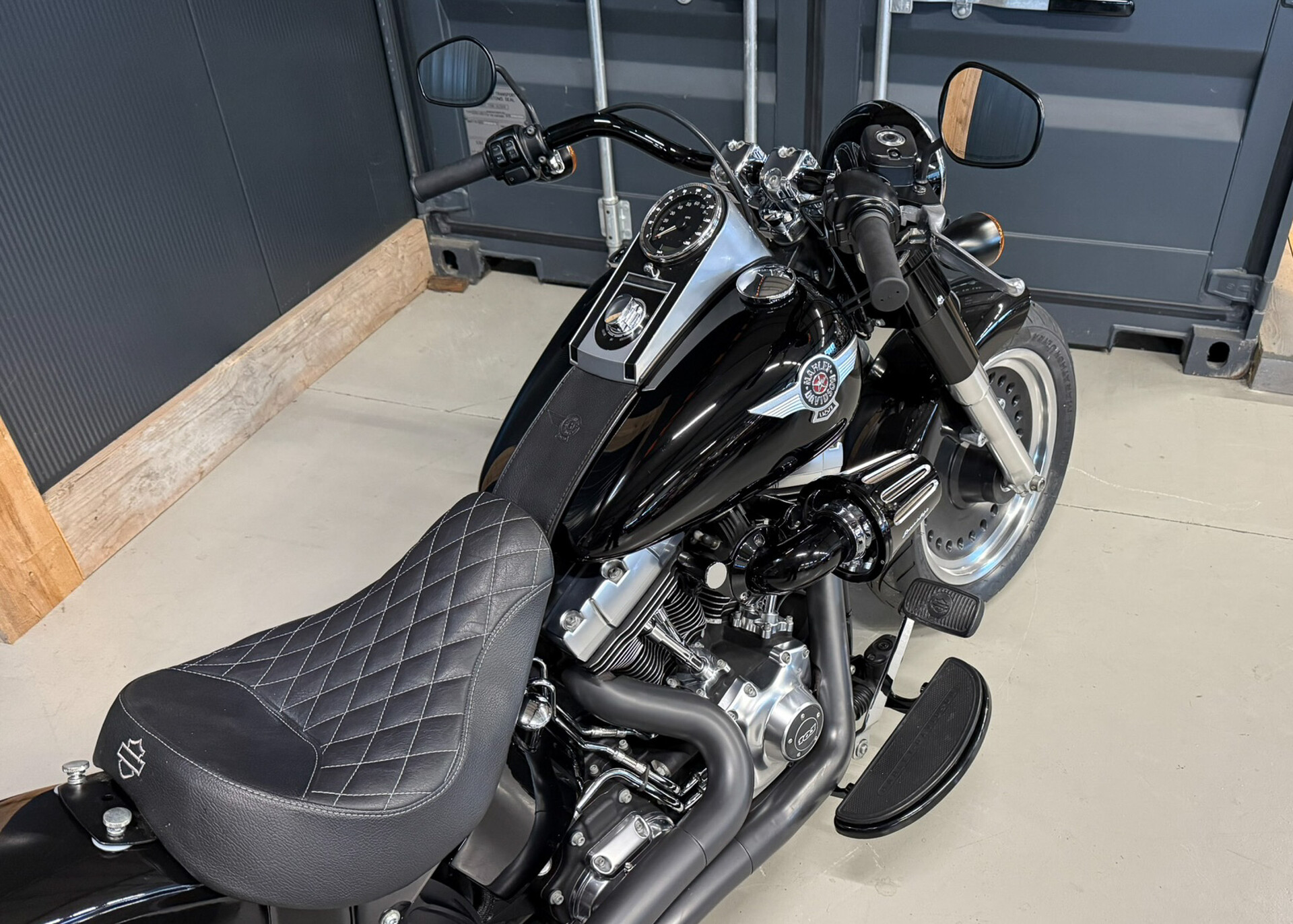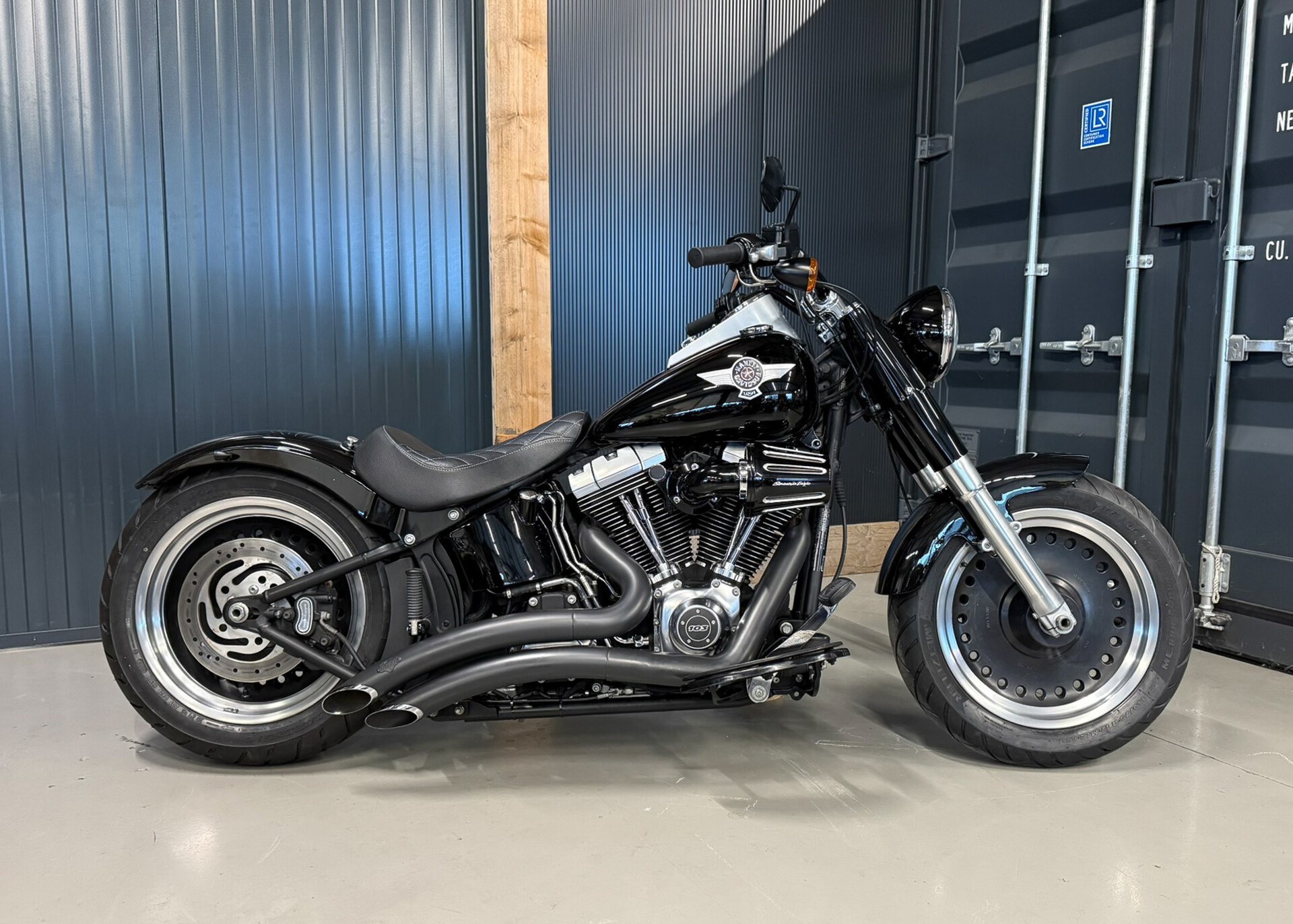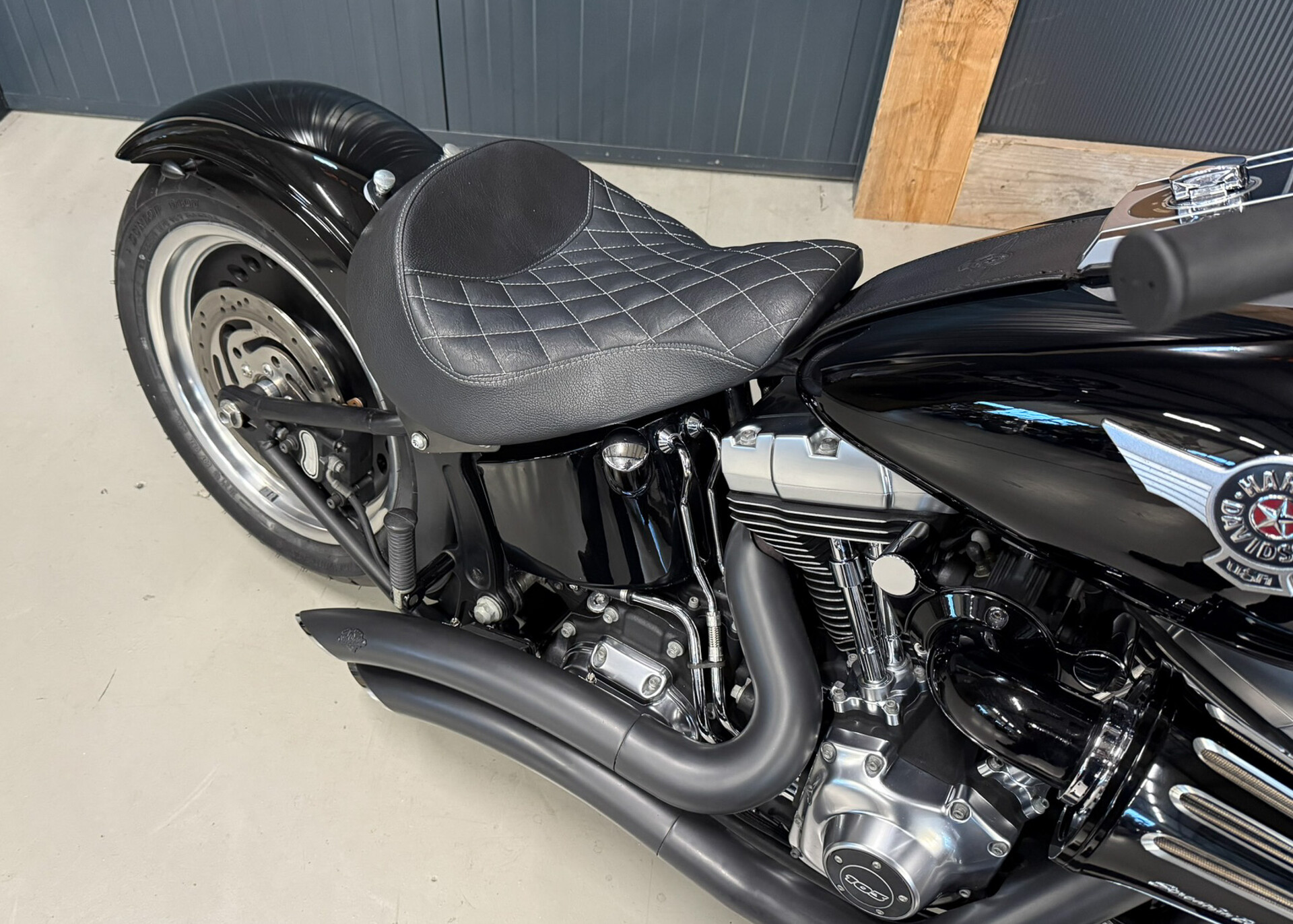 Deze Harley-Davidson Fat Boy Low uit 2012 is o.a. voorzien van custom fenders, Big Radius uitlaat, Heavy Breather, ledverlichting, sidemount, custom seat en meer..