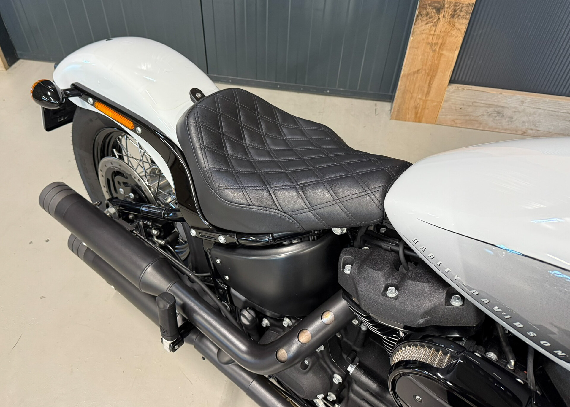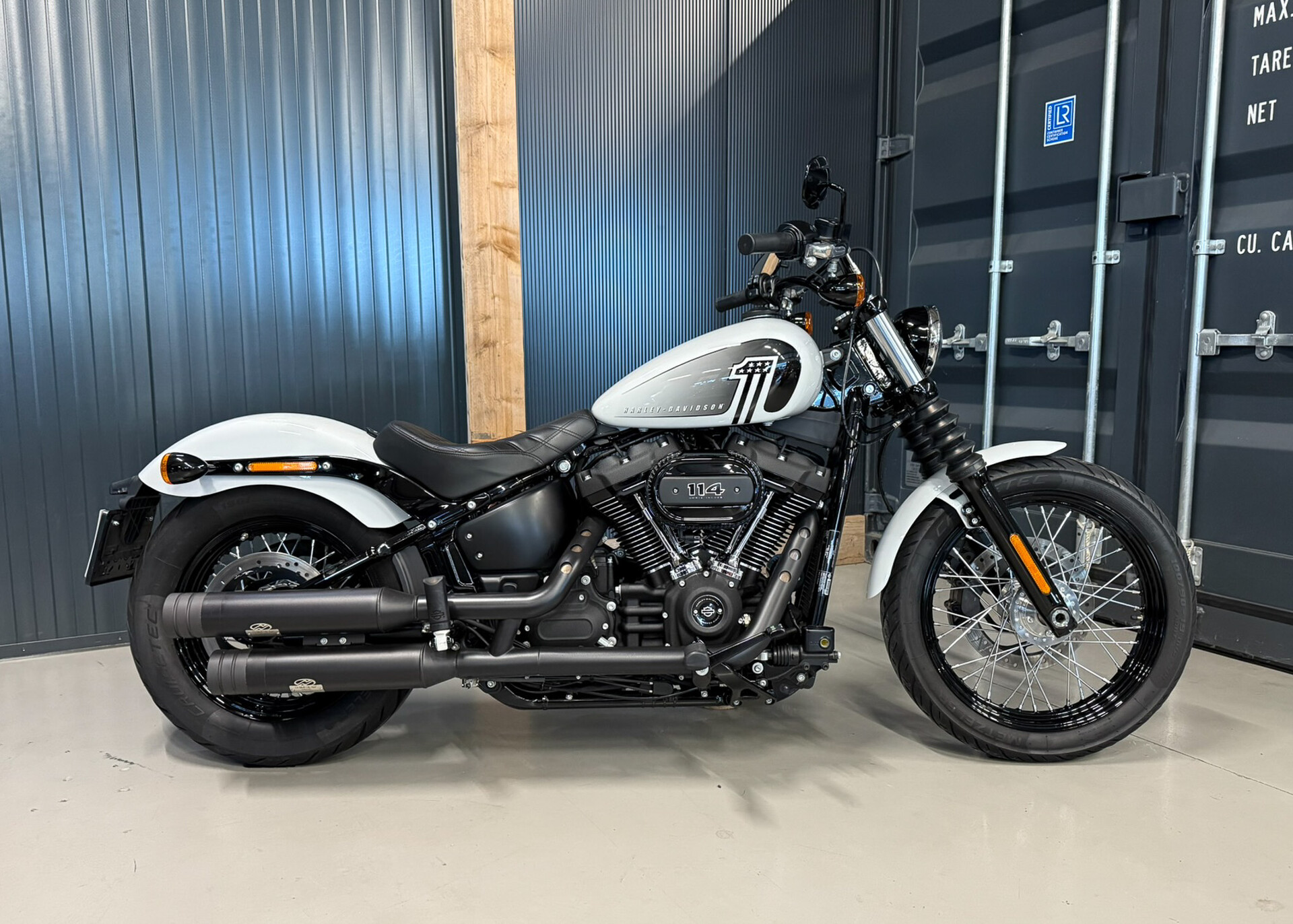 Deze Harley-Davidson Street Bob uit 2021 is o.a. voorzien van 114 CU, pearl white paint, Jekill & Hyde uitlaat en meer..