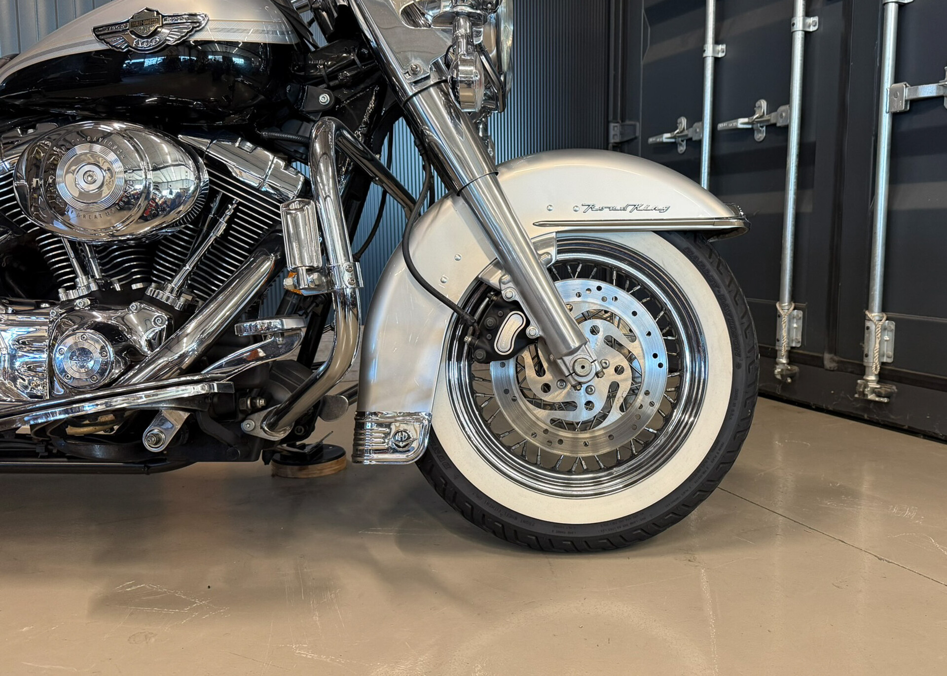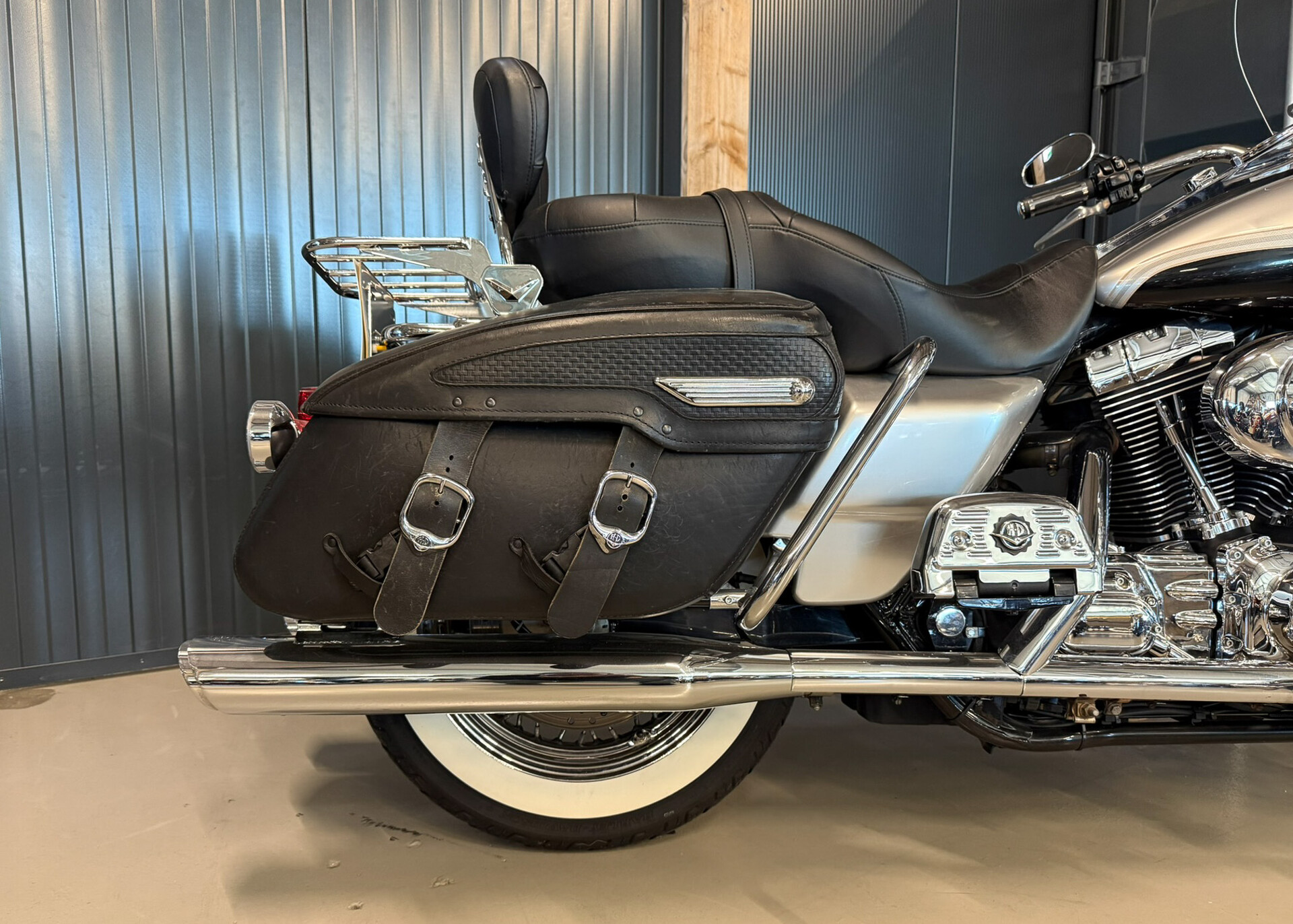 Deze Harley-Davidson Road King Classic uit 2003 is o.a. voorzien van een Vance & Hines uitlaat, dik stuur, sissybar en bagagerek.