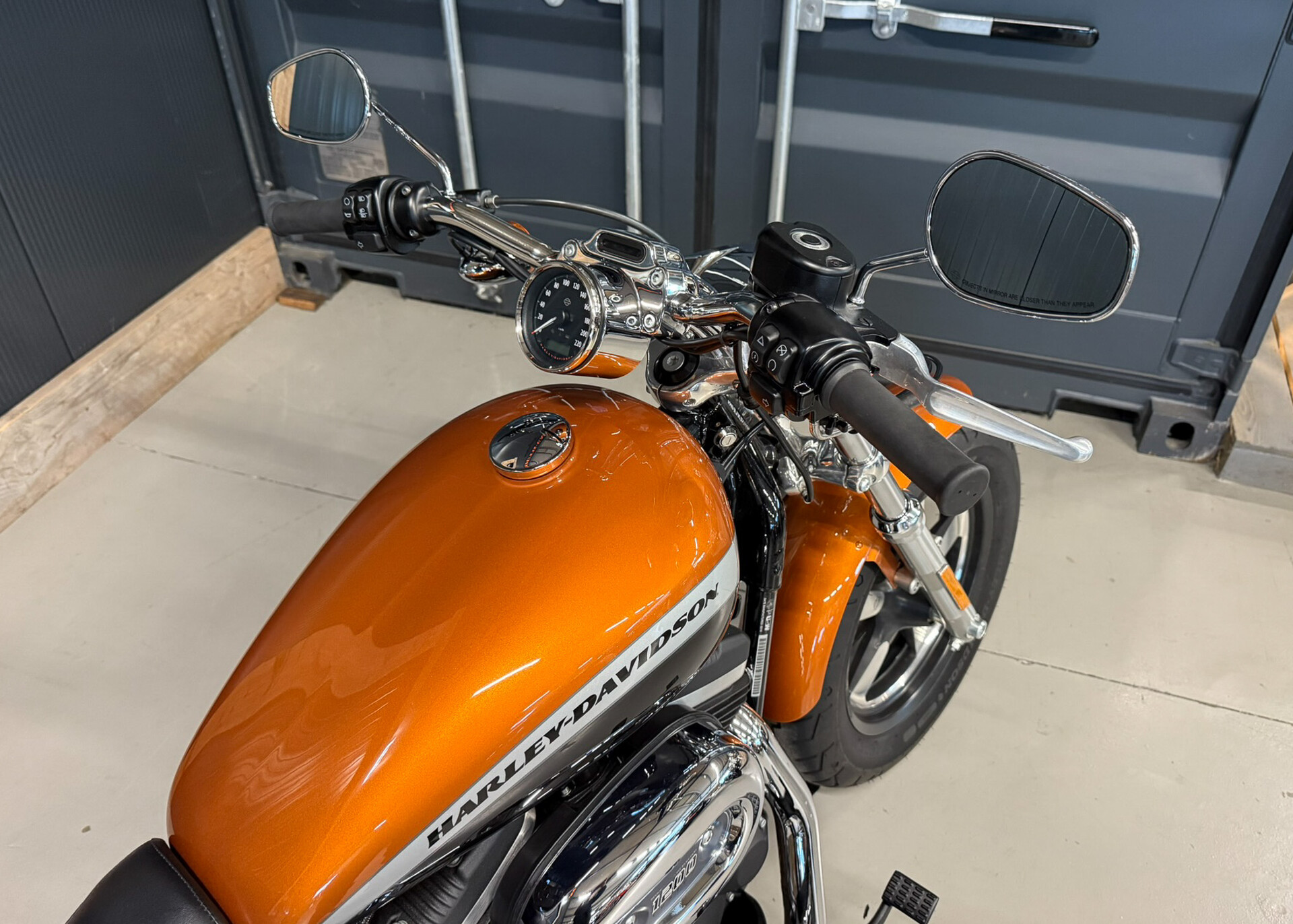 Deze Harley-Davidson Sportster uit 2016 is o.a. voorzien van orange/grey/black paint, forward controls, led headlamp en meer..